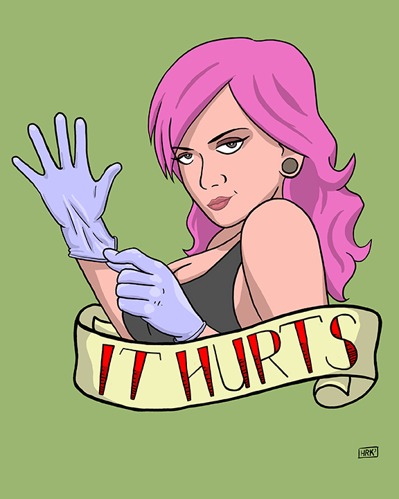 It Hurts Tattoo Shop Sign Pencil, digital scan/ink/color