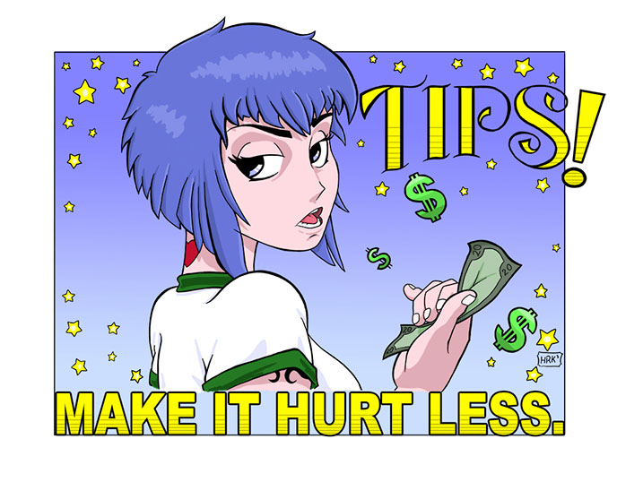 Tip sign for tattoo shop Pencil, digital scan/ink/color